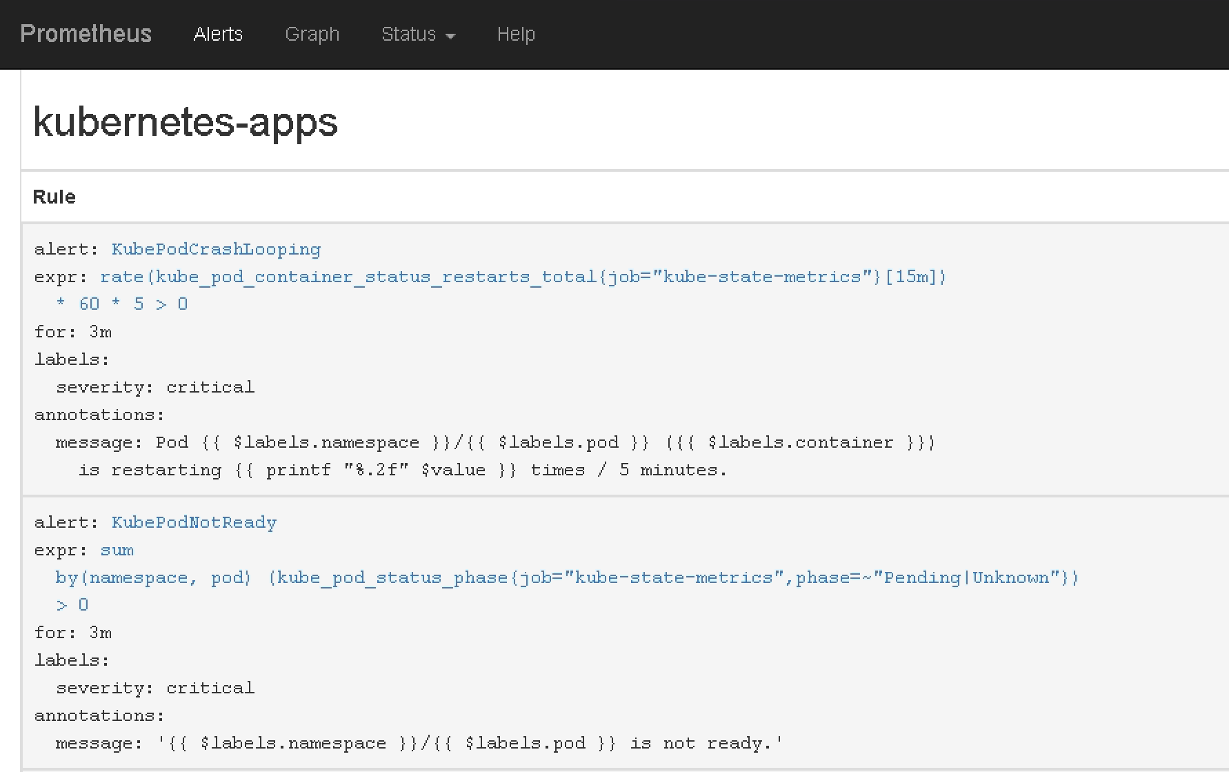 - 调整部分默认告警规则的覆盖范围. 例如 KubePodNotReady, 除了覆盖系统级别的 namespace, 还需要覆盖所有应用 namespace
