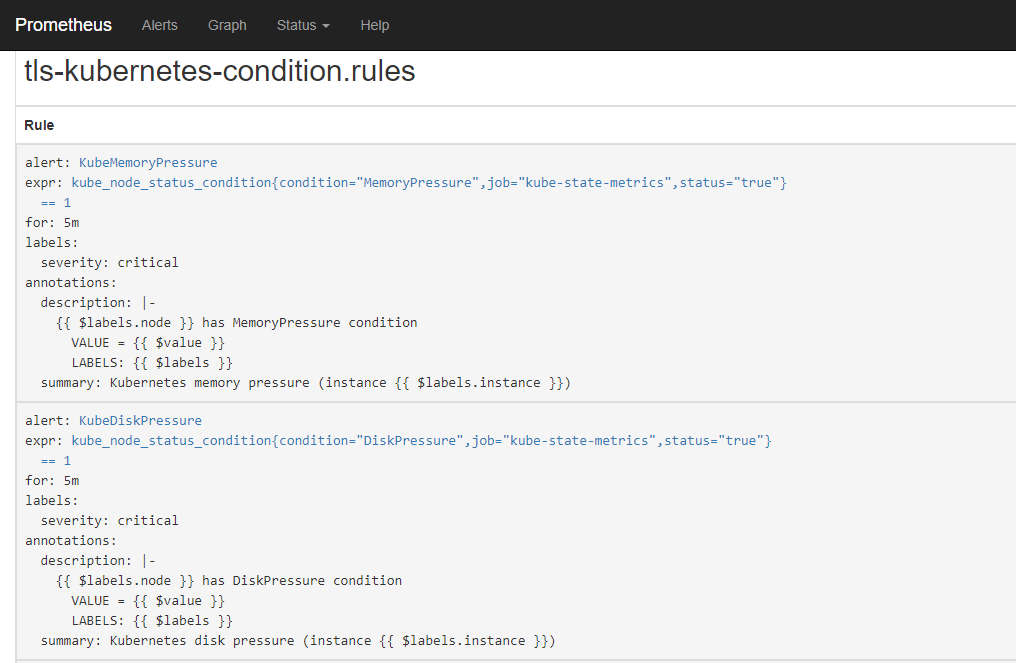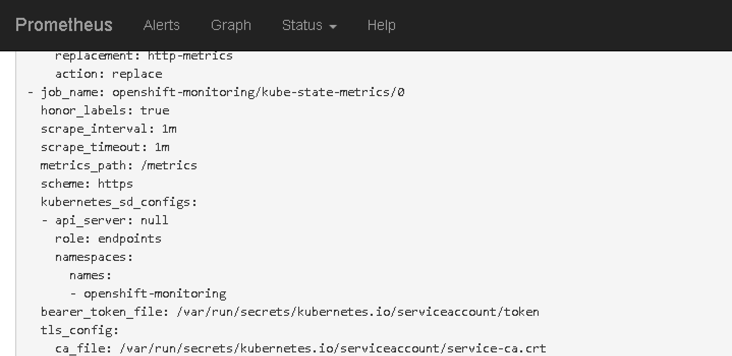 - Creating additional ConfigMap objects, that cause the cluster monitoring Prometheus instance to include additional alerting and recording rules. Note that this behavior is known to cause a breaking behavior if applied, as Prometheus 2.0 will ship with a new rule file syntax.