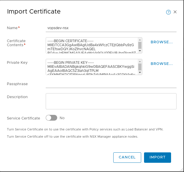 导入 PKI 签发的 nsx 服务器证书与私钥: System, Settings, Certificates, Import Certificate