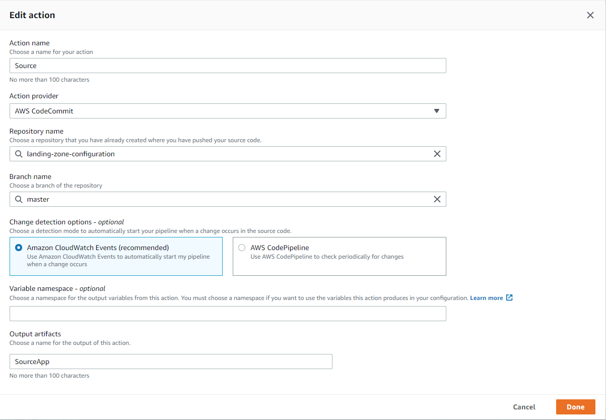 使用 CodeCommit 作为 Landing Zone Pipeline 构建源